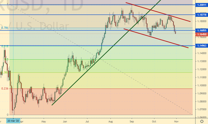 Growth scenario: pandemic press down on euro. Despite the fact that the ECB did not begin to expand assistance to countries affected by the virus, everyone understands that in the current situation it is only a matter of time. Europe will definitely be quarantined all November. It may be interesting to buy from 1.1500.