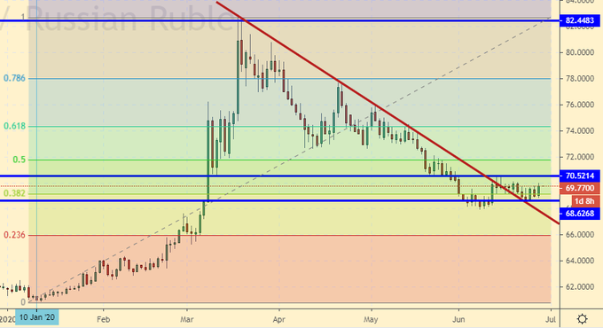 Falling scenario: who opened the shorts before, you can continue to hold them. Oil is still able to draw us growth by another 3-4 percent, which will support the ruble in the first decade of July.