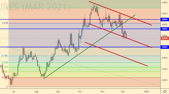 Growth scenario: December futures, expiration date December 14. Having passed the level of 600.0, the bulls could not return. They will now prepare to meet the market at 560.0.