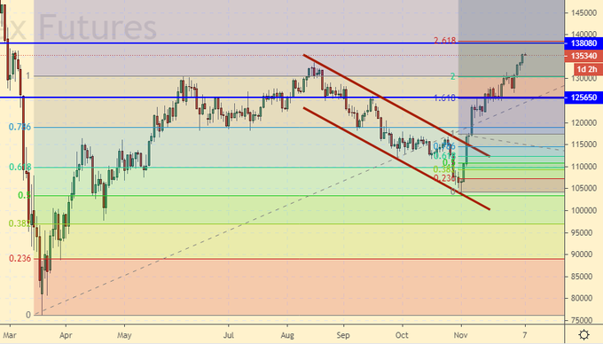 Growth scenario: there is no doubt that we will touch 138000. Then a pullback to the 126000 area should follow, after which the upward movement may resume. If Biden does not make harsh statements in the direction of Russia, then we can meet the second half of December in high spirits.