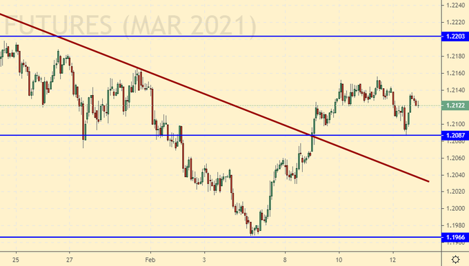 Продажа: нет. Кто в позиции от 1.2120, держите стоп на 1.2142. Цель: 1.1850 (1.1450?!).