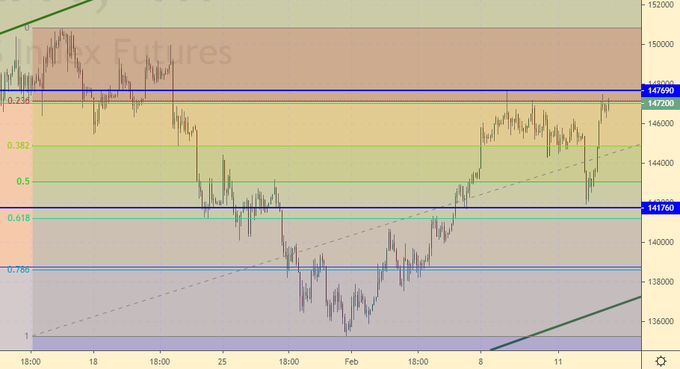 Крайне вероятно, что мы возьмем сегодня 148000 и резко пройдем к 150000. Настроения по нефти на азиатских торгах крайне оптимистичные. В еженедельном обзоре мы предположили, что закрытие пятницы на максимуме могло быть ловушкой, но уже очевидно, что это не так и рост на рынке черного золота продолжится.