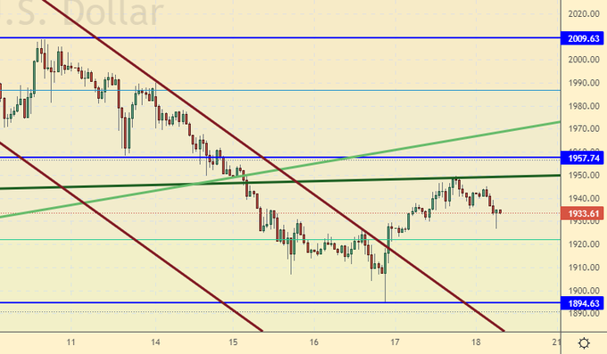 После подъема ставки ФРС золото попыталось пройти наверх, но рынок был остановлен в районе 1950. Сегодня мы увидим еще одну попытку пробиться выше, однако она может завершиться неудачей, так как толпа находится под впечатлением от прогнозов о том, что ФРС будет поднимать ставку в этом году еще аж 6 раз.