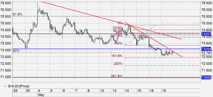 Продажа: при касании 73480. Стоп: 73780. Цель: 71000. Кто в позиции, держите стоп на 73300. Цель: 70300.