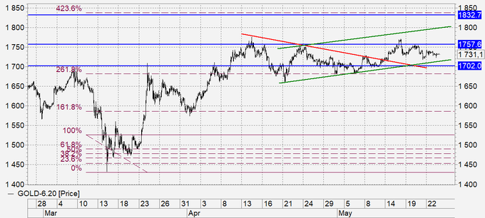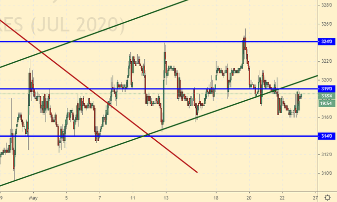 Продолжаем стоять в диапазоне. Быкам нужно сегодня показывать активность, иначе мы увидим падение ниже 1720, что приведет к выходу из пологого растущего канала с перспективами падения для начала в район 1650. На открытии Азия растет, но рост недостаточен для того чтобы мы могли говорить о прорыве вверх.