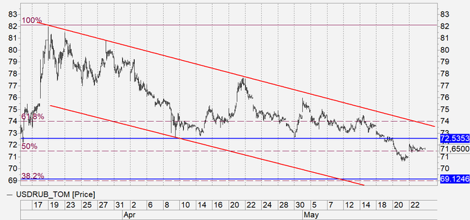 Продажа: думать при подходе к 73.00. Стоп: 74.40. Цель: 69.20.