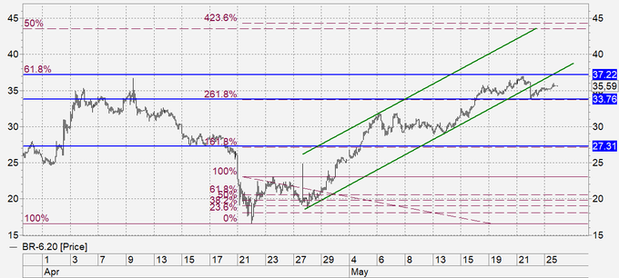 Продажа: нет. Кто в позиции, от 35.00, держите стоп на 36.60. Цель: 27.30.