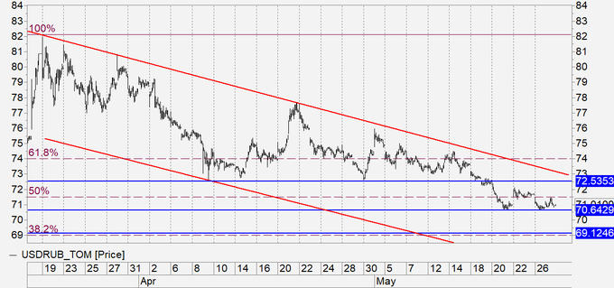 Нефть начала снижение, поэтому от рубля сегодня подвигов не ждем. Минфин вчера разместил очередные долговые бумаги. Объем спроса превышал предложение, благодаря чему рубль получал поддержку. До конца программы по продажам долларов в рамках бюджетного правила осталось шесть рабочих дней, что будем учитывать. Сегодня можно покупать пару.