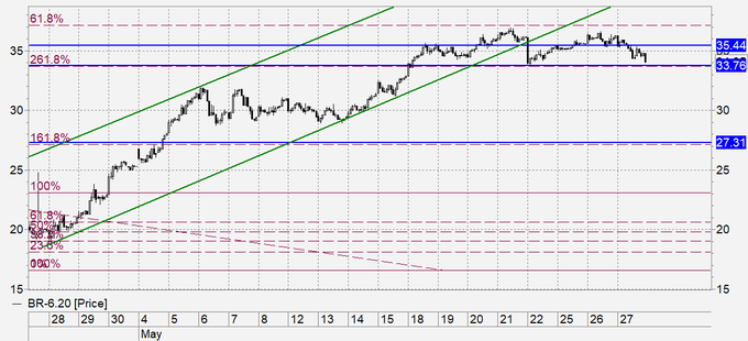 Данные по запасам нефти в США от API показали рост за неделю на 8.731 млн. баррелей. Рынок реагирует на данные цифры снижением. Уже сейчас в Азии цены достигли уровня 33.96, и нельзя исключать, что падение продолжится в европейскую и американскую сессии.