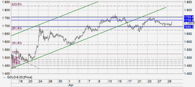 Золото: реакция на решение ФРС отставить ставку без изменений была сдержанной. Рынок не стал проходить ниже 1700 и вновь обозначил свои претензии на рост. Таким образом, мы продолжаем размышлять о возможном движении к уровню 1820. К концу мая в США могут начаться серьезные кризисные явления социального характера под давлением большого числа безработных. Это поддержит цены на золото.