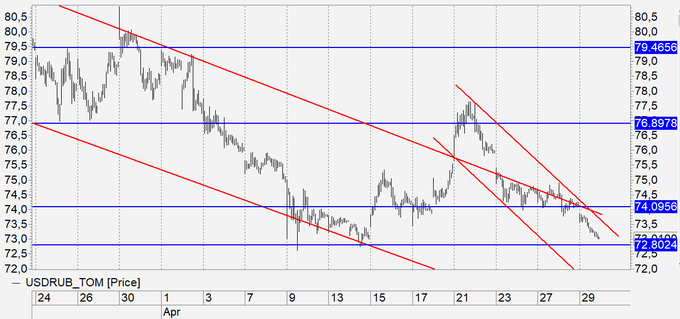 Продажа: нет. Кто в позиции, перенесите стоп на 74.17. Цель: 67.00.