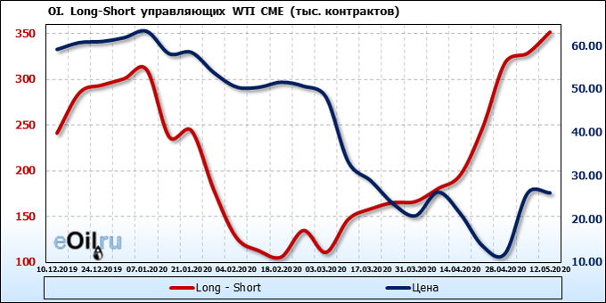Смотрим на объемы открытого интереса управляющих. Вы должны учитывать, что это данные трехдневной давности (за вторник текущей недели), они же и самые последние из тех, что публикует биржа ICE.