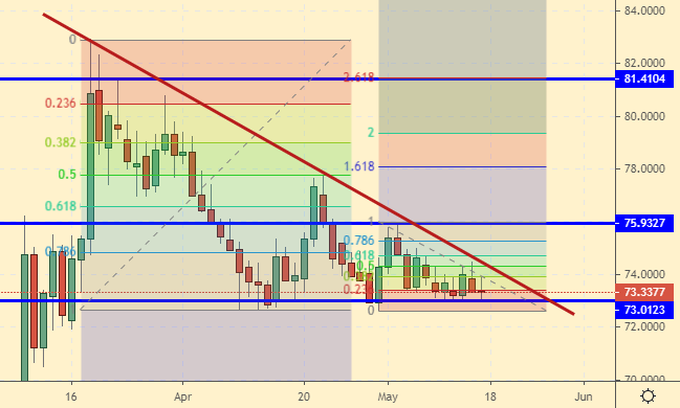 Продажа: в случае падения ниже 72.80. Стоп: 74.60. Цель: 70.00 (67.00).