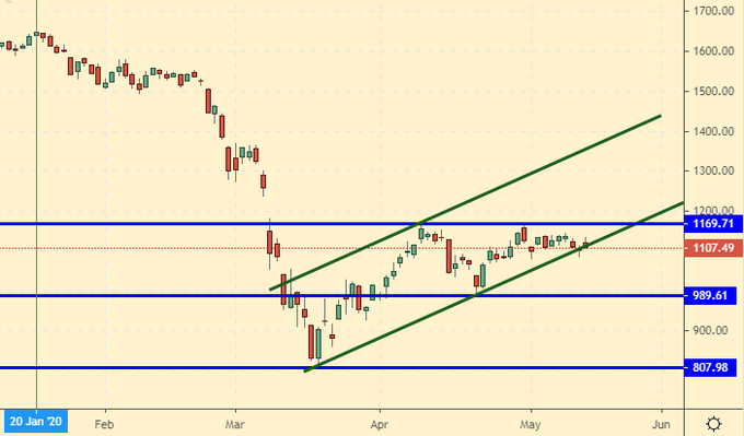 Сценарий падения: продолжаем считать, что можно продавать после падения ниже 1050. За два месяца карантина накоплен огромный фундаментальный негатив, который рано или поздно себя проявит.