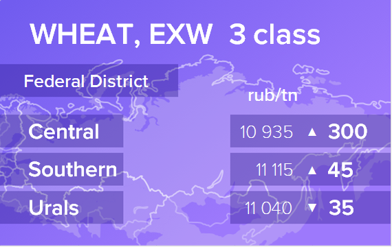Пшеница. Цены EXW. Россия. Данные на 16.12.2019