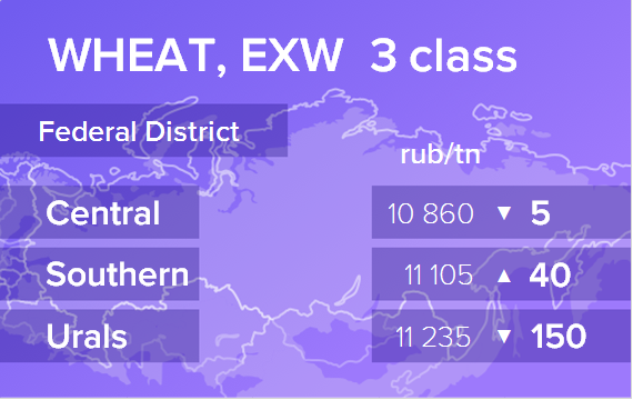 Пшеница. Цены EXW. Россия. Данные на 25.11.2019