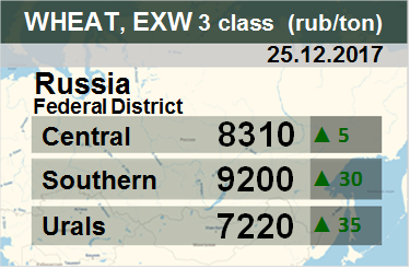 Пшеница. Цены EXW. Россия. Данные на 25.12.2017