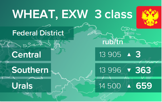 Пшеница. Цены EXW в России на 9 июля 2021