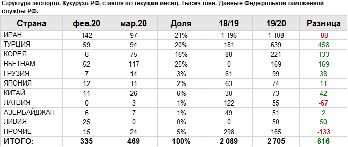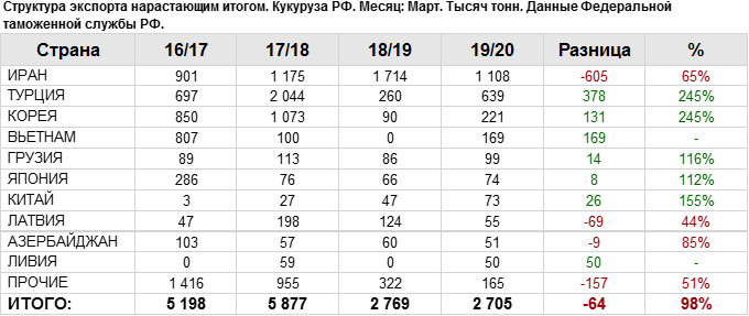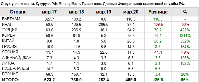 Росстат. Экспорт кукурузы из России на март 2020