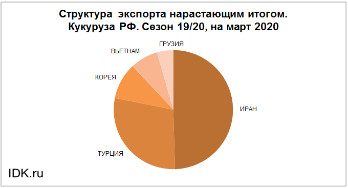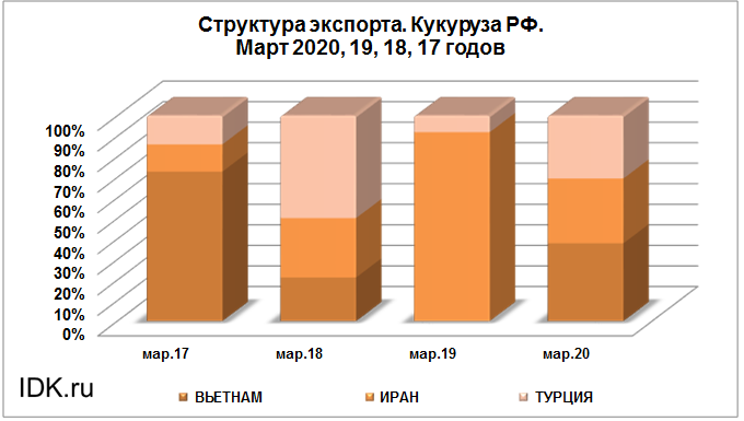 Структура экспорта кукурузы из России за март 2020