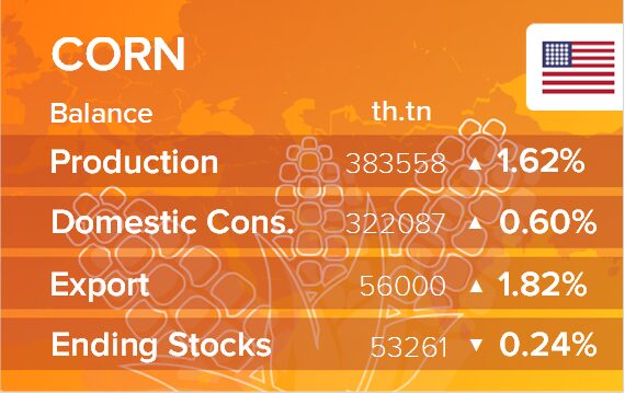 Министерство сельского хозяйства США (USDA) 28 июня сообщило, что внутренние запасы пшеницы, кукурузы и соевых бобов на 1 июня выросли более чем на 20% по сравнению с годом ранее. Запасы кукурузы по всем позициям на 1 июня оценивались в 4,993 миллиарда бушелей, что на 22% больше, чем годом ранее, в том числе 3,026 миллиарда в фермерских хозяйствах, рост на 37%, и 1,967 миллиарда вне ферм, рост на 4%. Заявленное исчезновение кукурузы в период с марта по май составило 3,36 млрд бушелей, что на 2% меньше по сравнению с 3,29 млрд бушелей за тот же период 2023 года.