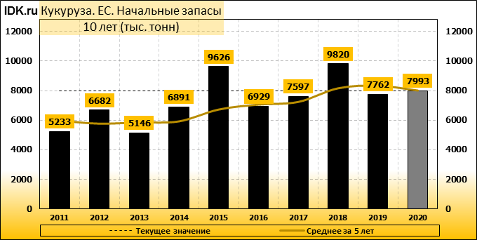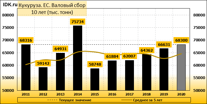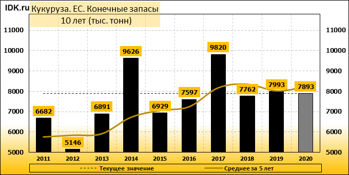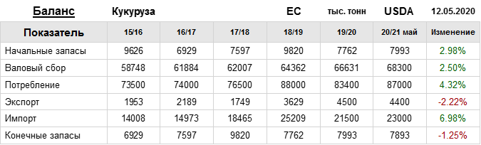 USDA. Баланс по кукурузе на 18 мая 2020. ЕС