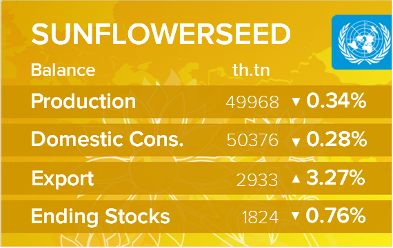 Согласно мартовскому отчету WASDE Министерства Сельского Хозяйства США, мировое производство подсолнечника в 2020/21 маркетинговом году снижено на 0,17 млн. тонн до 49,97 млн. тонн. При этом прогноз по урожаю подсолнечника повышен для Южной Африки на 0,07 млн. тонн до 0,72 млн. тонн, но снижен для России на 0,23 млн. тонн до 13,27 млн. тонн. Прогноз мирового потребления подсолнечника составляет 50,34 млн. тонн. Конечные мировые остатки 2020/21 года прогнозируются на уровне 1,82 млн. тонн, по сравнению с 2,45 млн. тонн в предыдущем году.