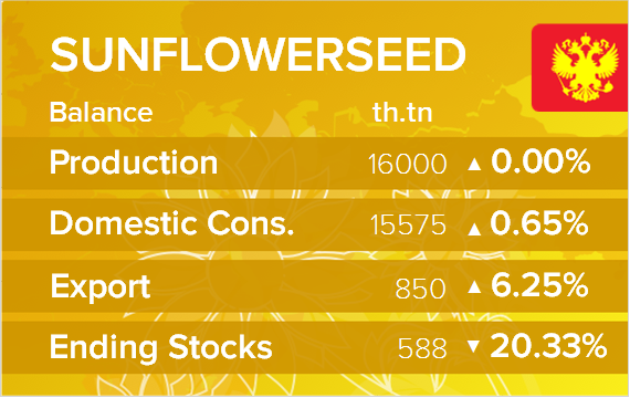 USDA. Баланс по подсолнечнику на 14 марта 2023. Россия