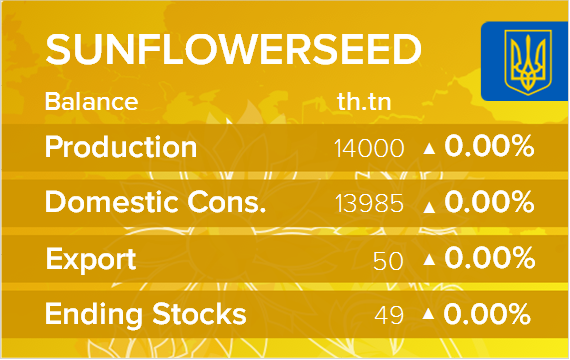 Согласно декабрьскому отчету WASDE, производство подсолнечника в Украине в 2020/21 году оценивается в 14,0 млн. метрических тонн, без изменений по сравнению с прогнозом прошлого месяца, и на 2,50 млн. тонн или 15 процентов меньше, чем в прошлом году. Урожайность, как и в ноябре, оценивается в 2,06 тонны с гектара, что на 20 процентов меньше, чем в прошлом году. Уборочная площадь оценивается в 6,8 миллиона гектаров, без изменений по сравнению с прошлым месяцем и на 6 процентов больше, чем в прошлом году.