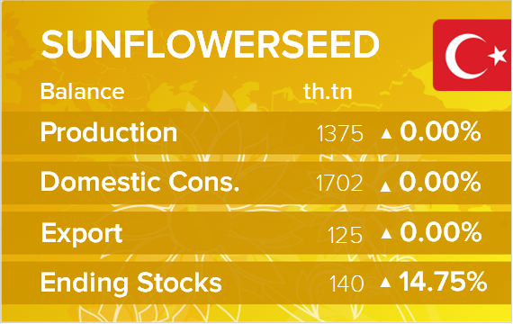 Турция отменила 8-процентный таможенный налог на импорт семян подсолнечника в рамках ранее установленной квоты. В августе страна установила квотный тариф в размере 8% таможенного налога на 1 млн тонн маслосемян подсолнечника или 20% таможенного налога на эквивалент 400000 тонн сырого подсолнечного масла. Этот тариф будет действовать с 1 января 2025 года по 30 апреля 2025 года. В соответствии с новым постановлением правительство отменило 8-процентный налог на импорт маслосемян подсолнечника, а тариф на импорт вне квоты был снижен до 12 % с 27 % для большинства стран происхождения. Однако тариф на подсолнечное масло в размере 20% не изменился.