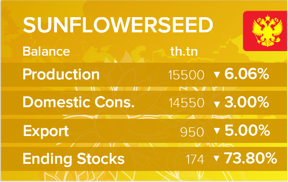 USDA. Баланс по подсолнечнику на 18 августа 2021. Россия