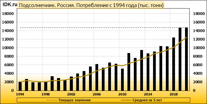 Потребление: оценивается в 14705 тысяч тонн.