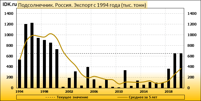 Экспорт: оценивается в 650 тысяч тонн.