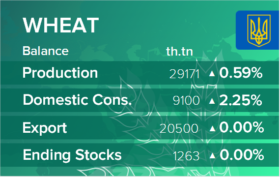 Согласно апрельскому отчету Министерства Сельского Хозяйства США, прогноз производства пшеницы в Украине на 2019/20 год составляет 29,17 млн. тонн. Это на 0,17 млн тонн больше объема, который прогнозировался в прошлом месяце, и на 16,42 процента или на 4,11 млн. тонн больше, по сравнению с прошлым годом. Прогнозируемая площадь при этом сократилась с 7,05 млн. га до 7,02 млн. га. Урожайность напротив увеличена с 4,11 до 4,16 тонны с гектара. Прогноз по экспорту пшеницы из Украины остался без изменений и составляет 20,5 млн. тонн.