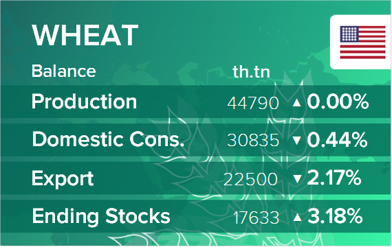 Прогноз для американской пшеницы на 2021/22 год в этом месяце заключается в неизменном уровне запасов, снижении внутреннего потребления, сокращении экспорта и увеличении конечных остатков. Продовольственное потребление снижено на 3 миллиона бушелей до 959 миллионов, при этом все сокращение приходится на твердую пшеницу. Экспорт снижен на 15 миллионов бушелей до 810 миллионов из-за замедления экспортных продаж и поставок. Прогнозируемые остатки на конец сезона 2021/22 повышены на 20 миллионов бушелей до 648 миллионов, но все еще на 23 процента ниже прошлогоднего уровня.