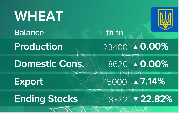 Согласно отчету Министерства сельского хозяйства США, самостоятельно возобновив работу своих основных морских портов на Черном море, Украина, согласно прогнозам, увеличит экспорт зерна до конца 2023-24 маркетингового года. В сезоне 2023/24, который продлится с июля по июнь, ФАС прогнозирует увеличение экспорта кукурузы на 8% в годовом исчислении до 29,2 млн тонн, увеличение экспорта пшеницы на 3% до 17,7 млн тонн, увеличение экспорта ячменя на 22% до 3,3 млн тонн и почти 10-кратное увеличение экспорта ржи до 170000 тонн. ФАС также прогнозирует увеличение производства основных зерновых культур Украины в годовом исчислении. Он прогнозирует, что в 2023-2024 годах производство пшеницы вырастет на 11% до 22,5 млн тонн.
