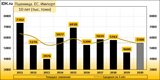 Импорт: составит 5500 тысяч тонн.