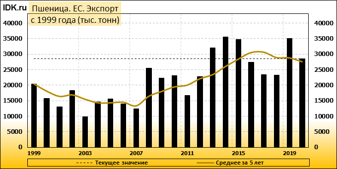 Экспорт: оценивается в 28500 тысяч тонн.