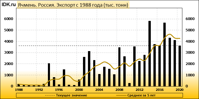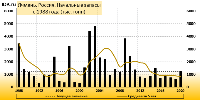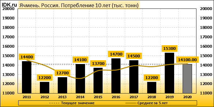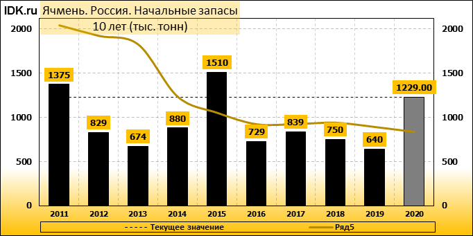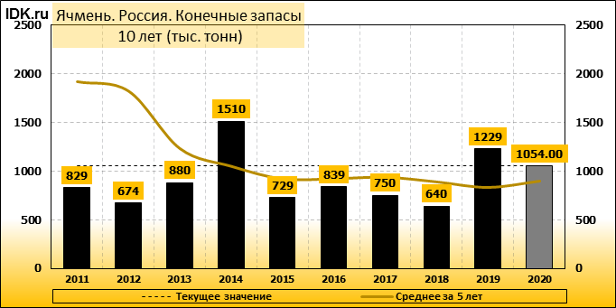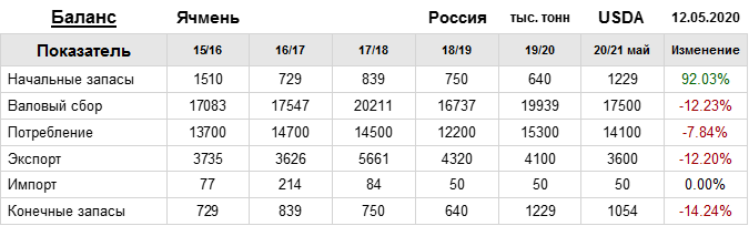 USDA. Баланс по ячменю на 14 мая 2020. Россия