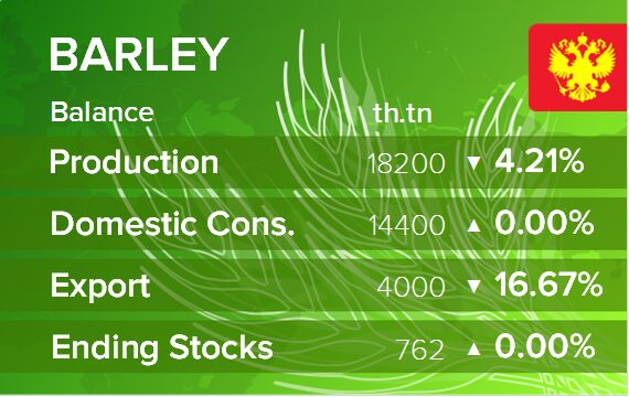 USDA. Баланс по ячменю на 15 июля 2024. Россия