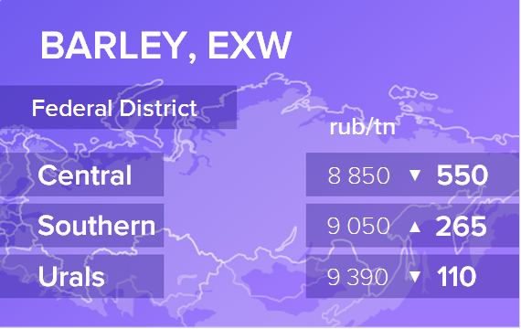 Ячмень. Цены EXW. Россия. Данные на 05.08.2019