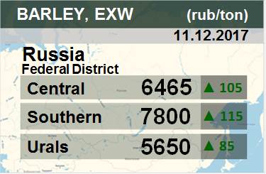 Ячмень. Цены EXW. Россия. Данные на 11.12.2017