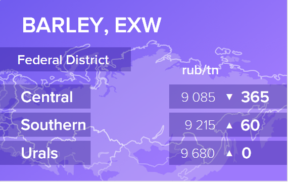 Ячмень. Цены EXW. Россия. Данные на 22.08.2019