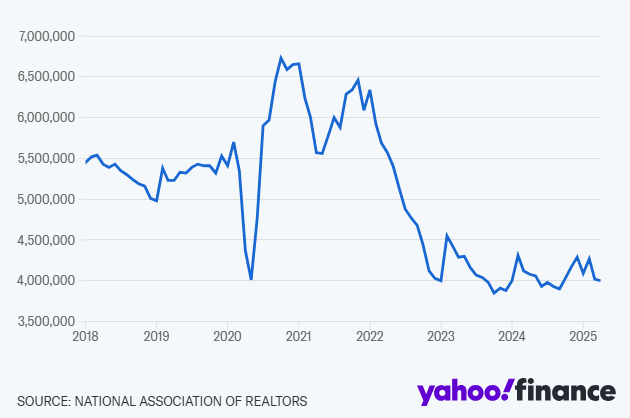 График падения продаж вторичного жилья в апреле Источник: Yahoo Finance