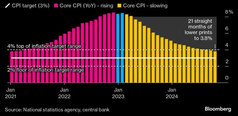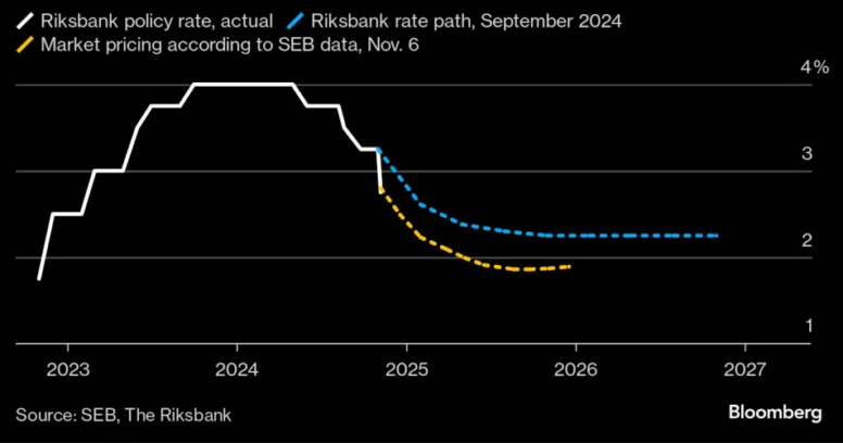 Норвегия в понедельник может показать заметное замедление инфляции до 2,4%. Но поскольку чиновников беспокоит слабость кроны, Центральный банк оставил стоимость заимствований без изменений в четверг, сигнализируя об отсутствии планов по снижению ставки в ближайшее время.