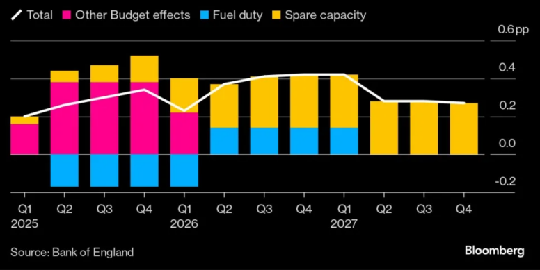 Рис 2. Влияние бюджета на прогноз инфляции ИПЦ в Великобритании Источник: Bloomberg