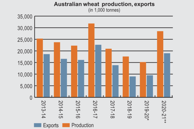 Производство зерновых в Австралии восстановится в 2020-21 году после нескольких лет снижения урожая из-за засухи. Страна является крупным игроком на мировом рынке, большая часть ее зерновых и масличных культур ориентирована на экспорт.