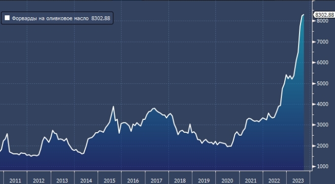 Согласно недавнему докладу Министерства сельского хозяйства США, мировые цены на оливковое масло выросли до $8900 за тонну в сентябре из-за «чрезвычайно засушливой погоды» в Средиземноморье. Уже сейчас средняя цена в августе была на 130% выше по сравнению с предыдущим годом и «никаких признаков снижения» не наблюдалось, сообщило Министерство сельского хозяйства США.