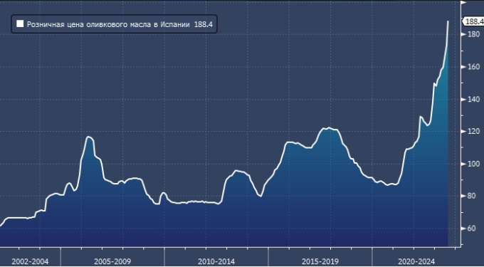 Цены на оливковое масло в испанской Андалусии в сентябре взлетели до 8,45 евро (9,02 доллара США) за килограмм, согласно данным Mintec. Это означает «самую высокую цену, когда-либо зарегистрированную на испанское оливковое масло», согласно данным компании за 20–30 лет, и представляет собой скачок на 111% по сравнению с предыдущим годом.