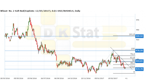Сценарий падения: наблюдаем в большей степени спекулятивные игры, которые не на чем не основаны. Продолжаем вспоминать, что месяц у нас пока март и, что там с посевами еще очень большой вопрос, что в России, что в Канаде. Иллюзия рынка заключается в том, что даже при благоприятных данных о новом урожае в недалеком будущем, цены могут не упасть еще ниже, так как эти позитивные ожидания уже в цене.